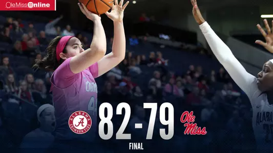 It was a thrilling run to the finish, with the Rebels leading 79-78 with 36 seconds left to play after a tug-of-war fourth quarter with the Crimson Tide. However, misfortune reared its ugly at just that point, as Alissa Alston (11 points, nine assists) had the ball stripped from her by Alabama's Shaquera Wade (10 points, six rebounds, five assists), who ran down for a layup to take an 80-79 lead with 15 seconds left. The Rebels were unable to convert after the timeout, and a pair of Alabama free throws with seven seconds to play finalized the game at 82-79.